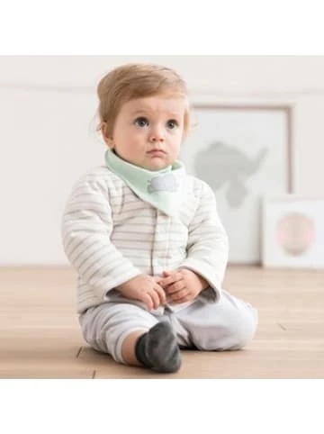 Ob als Halswärmer, niedliches Accessoire oder praktisches Spucktuch – das Dreieckstuch von BORNINO ist immer die richtige Wahl. Dank seiner raffinierten Wendefunktion passt es zu jedem Outfit. Dreieckstuch von BORNINO wendbar Seite 1 geringelt mit „bornino“-Aufdruck, Seite 2 einfarbig mit Elefanten-Print verstellbare Druckknöpfe Interlock-Qualität reine Baumwolle Damit sich Dein Baby rundum wohlfühlt, ist das Tuch aus reiner Baumwolle gefertigt. Der verwendete Interlock-Jersey überzeugt mit seinen langlebigen Eigenschaften. Das Dreieckstuch ist mit einem zweifach verstellbaren Druckknopfverschluss versehen. So ist das An- und Ausziehen schnell erledigt. Ob geringelt oder einfarbig mit süßem Elefanten-Print – das Tuch hat immer die passende Seite zu bieten.Länge: 0,1 cmBreite: 0,1 cmHöhe: 0,1 cmPflegehinweise:* Bleichen: Nicht bleichen* Professionelle Textilpflege: Nicht trockenreinigen* Waschen: Schonwaschgang 40°* Bügeln: Bügeln mit einer Höchsttemperatur der Bügeleisensohle von 150 °C* Trocknen: Trocknen im Tumbler: 1 PunktMaterial: 100% BaumwolleGeschlecht: Unisex