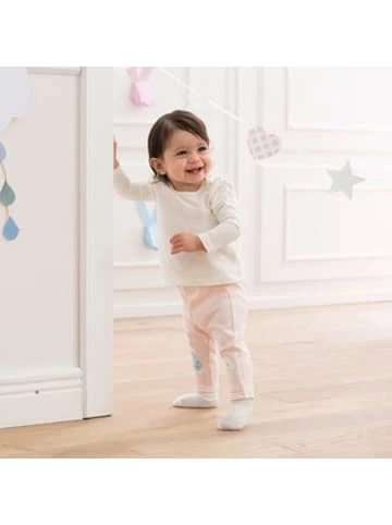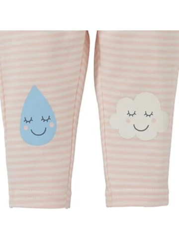 Mit ihrem liebevoll designten Wolken-Motiv sorgen die Leggings von BORNINO für gute Laune – auch bei Regenwetter. 2er-Pack Leggings von BORNINO Leggings 1 mit Wolken-Allover-Print, gerafften Beinen und Mäusezähnchen, Leggings 2 geringelt mit Wolken- und Tropfen-Print Gummizugbund Interlock-Qualität reine Baumwolle Damit sich Dein Baby rundum wohlfühlt, sind beide Leggings aus weichem Interlock-Jersey gefertigt. Die verarbeitete Baumwolle sorgt dabei für ein besonders angenehmes Tragegefühl. Gleichzeitig überzeugt die Materialart mit ihrer Langlebigkeit. Damit die Leggings immer gut sitzen, sind sie mit einem anschmiegsamen Gummibund ausgestattet. So lassen sie sich auch kinderleicht an- und ausziehen. Hinweis Der Artikel fällt enger aus. Bitte eine Größe größer bestellen.Länge: 0,1 cmBreite: 0,1 cmHöhe: 0,1 cmPflegehinweise:* Bleichen: Nicht bleichen* Professionelle Textilpflege: Nicht trockenreinigen* Waschen: Schonwaschgang 40°* Bügeln: Bügeln mit einer Höchsttemperatur der Bügeleisensohle von 150 °C* Trocknen: Trocknen im Tumbler: 1 PunktMaterial: 100% BaumwolleGeschlecht: Mädchen