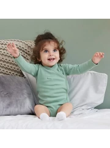 Praktischer Doppelpack: Die Bodys von BORNINO überzeugen dank hübscher Farben und reiner Baumwolle. 2er-Pack Wickelbodys von BORNINO Body 1: beige-melange, „hello“-Print und „bornino“-Schriftzug Body 2: unifarben mit „bornino“-Schriftzug Raglanärmel Druckknöpfe an der Seite und im Schrittbereich Interlock-Qualität reine Baumwolle Beide Bodys sind aus reiner Baumwolle in Interlock-Qualität gefertigt. So liegen sie immer angenehm weich auf der Babyhaut. Die Druckknöpfe an der Seite ersparen den Kleinen das lästige Anziehen über den Kopf und machen so das Umziehen zum Kinderspiel. Die Druckknöpfe im Schrittbereich unterstützen zusätzlich beim Wickeln. Die Größenangaben der Bodys sind eingedruckt – so stört kein Einnähetikett beim Schlafen, Kuscheln und Spielen. Hinweis Der Artikel fällt kleiner aus. Bitte eine Größe größer bestellen.Länge: 0,1 cmBreite: 0,1 cmHöhe: 0,1 cmPflegehinweise:* Bleichen: Nicht bleichen* Professionelle Textilpflege: Nicht trockenreinigen* Waschen: Schonwaschgang 40°* Bügeln: Bügeln mit einer Höchsttemperatur der Bügeleisensohle von 150 °C* Trocknen: Trocknen im Tumbler: 1 PunktMaterial: 100% BaumwolleGeschlecht: Unisex