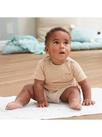 Das T-Shirt von BORNINO begeistert mit Allover-Print und reiner Baumwolle. T-Shirt von BORNINO Haus-Allover-Print, aufgesetzte Tasche mit „bornino“-Schriftzug Druckknöpfe an den Schultern Rundhalsausschnitt Interlock-Qualität aus reiner Baumwolle Die Verwendung reiner Baumwolle in Interlock-Qualität sorgt dafür, dass sich das T-Shirt angenehm weich anfühlt. Die praktischen Druckknöpfe an den Schultern helfen Mama und Papa beim Umziehen der Kleinen. Die liebevoll designten Details machen das Shirt zum echten Liebling im Haus. Hinweis Der Artikel fällt kleiner aus. Bitte eine Größe größer bestellen.Länge: 0,1 cmBreite: 0,1 cmHöhe: 0,1 cmPflegehinweise:* Bleichen: Nicht bleichen* Professionelle Textilpflege: Nicht trockenreinigen* Waschen: Schonwaschgang 40°* Bügeln: Bügeln mit einer Höchsttemperatur der Bügeleisensohle von 150 °C* Trocknen: Trocknen im Tumbler: 1 PunktMaterial: 100% BaumwolleGeschlecht: Unisex