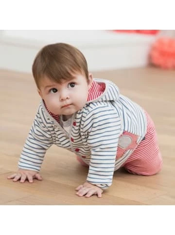 Bio-Baumwolle, unwiderstehlich weicher Interlock, tolle Wendefunktion – diese Jacke von BORNINO überzeugt auf ganzer Linie. Wendejacke von BORNINO Seite 1 geringelt mit Elefanten-Applikation und „bornino“-Print, Seite 2 geringelt mit „bornino“-Print angesetzte Kapuze durchgehende Druckknopfleiste Interlockqualität Bio-Baumwolle Welche Ringel dürfen es heute sein? Dank Wendefunktion hält die BORNINO-Jacke gleich zwei tolle Streifen-Looks zum Kombinieren bereit. Eine Seite ist zusätzlich mit einer niedlichen Elefanten-Applikation versehen. Auch der Tragekomfort kommt nicht zu kurz: Die Wendejacke ist aus Bio-Baumwolle gefertigt. Der kuschelweiche Interlock liegt besonders angenehm auf Babys Haut. Beim An- und Ausziehen unterstützt die durchgehende Druckknopfleiste. Eine angesetzte Kapuze hält kleine Köpfe sanft und zuverlässig warm.Länge: 0,1 cmBreite: 0,1 cmHöhe: 0,1 cmPflegehinweise:* Bleichen: Nicht bleichen* Professionelle Textilpflege: Nicht trockenreinigen* Waschen: Schonwaschgang 40°* Bügeln: Bügeln mit einer Höchsttemperatur der Bügeleisensohle von 150 °C* Trocknen: Nicht im Tumbler trocknenMaterial: 100% BaumwolleGeschlecht: Unisex