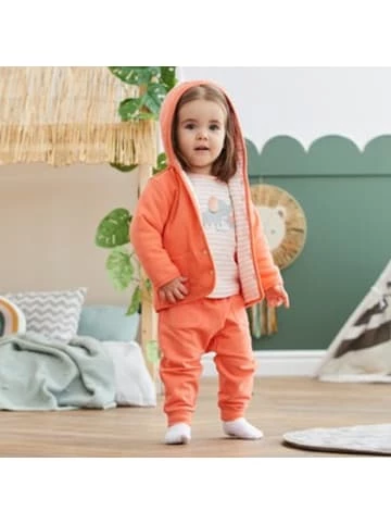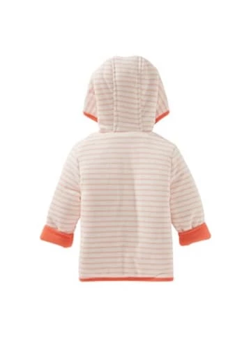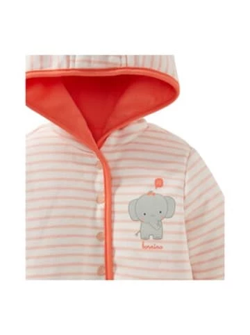 Beide Seiten der Wendejacke von BORNINO zaubern kleinen Tierfans dank süßer Prints und reiner Baumwolle ein Lächeln ins Gesicht. Wendejacke von BORNINO mit Kapuze Seite 1: Ringel-Look, Elefanten-Print mit „Hi“-Sprechblase und „bornino“-Schriftzug Seite 2: unifarben, Geparden-Print mit „bornino“-Schriftzug, applizierte Taschen durchgehende Druckknopfleiste auf der Vorderseite Interlock-Qualität Obermaterial aus reiner Baumwolle Dank reiner Baumwolle in Interlock-Qualität liegt die Wendejacke immer angenehm und weich auf der Haut. Die Kapuze hält den Kopf der Kleinen immer schön warm, die praktische Druckknopfleiste erleichtert das Umziehen der Kleinen. Die liebevoll designten Details machen den tierisch-süßen Look der Jacke perfekt.Länge: 0,1 cmBreite: 0,1 cmHöhe: 0,1 cmPflegehinweise:* Bleichen: Nicht bleichen* Professionelle Textilpflege: Nicht trockenreinigen* Waschen: Schonwaschgang 40°* Bügeln: Bügeln mit einer Höchsttemperatur der Bügeleisensohle von 150 °C* Trocknen: Nicht im Tumbler trocknenMaterial: 100% BaumwolleFüllung: 100% PolyesterGeschlecht: Mädchen